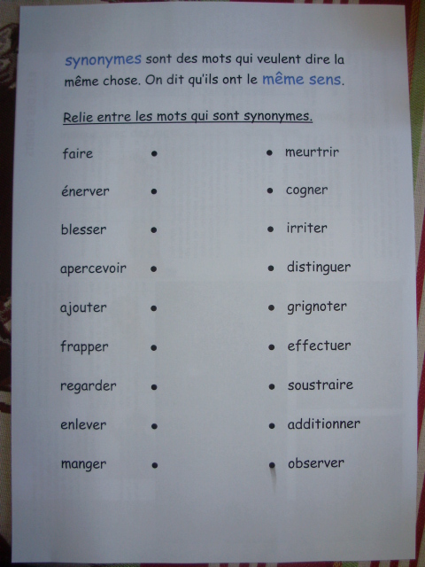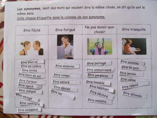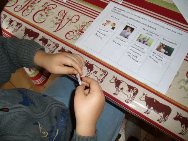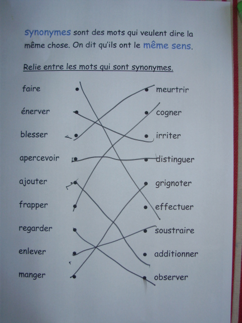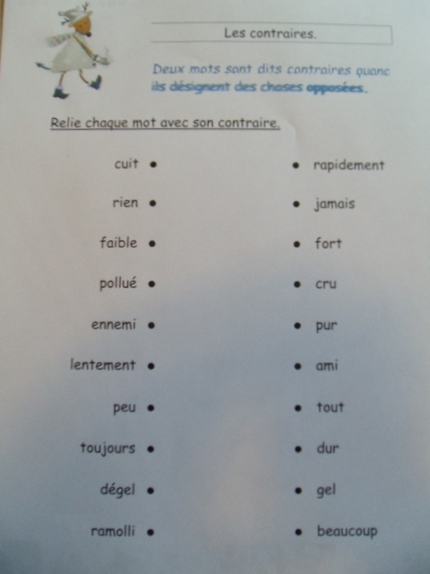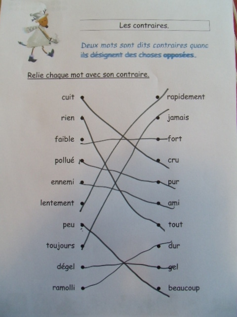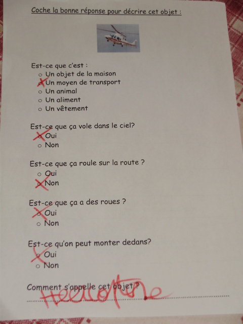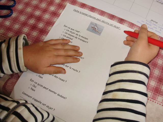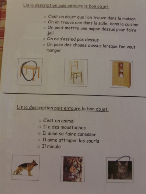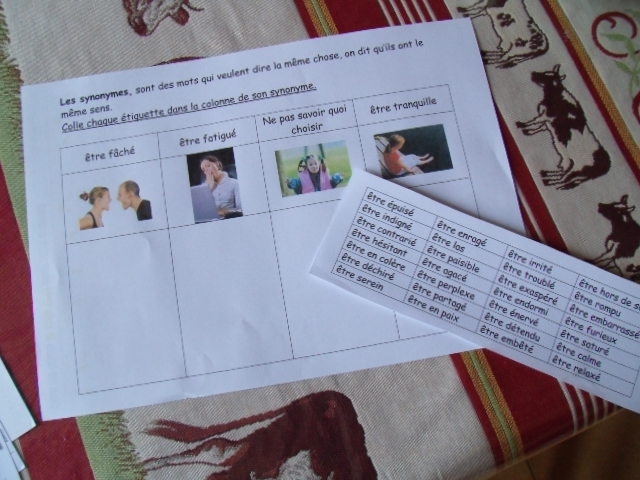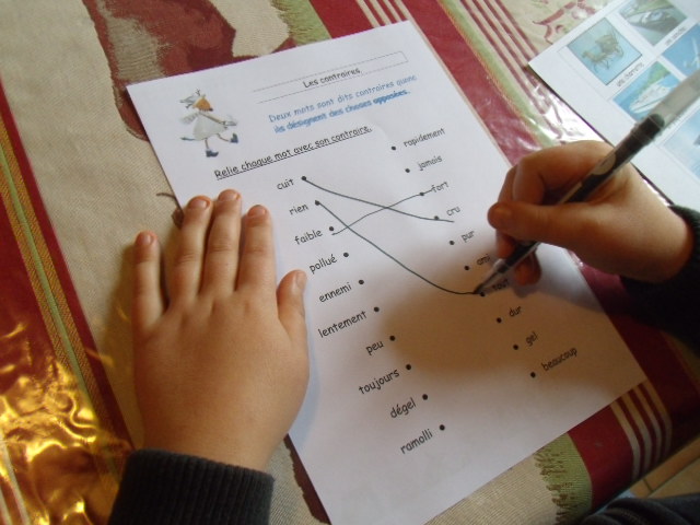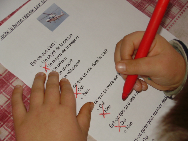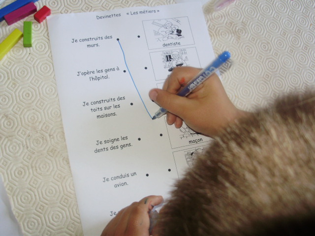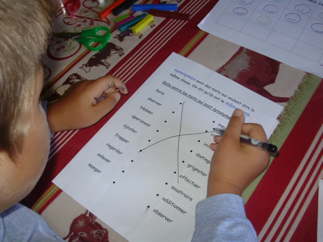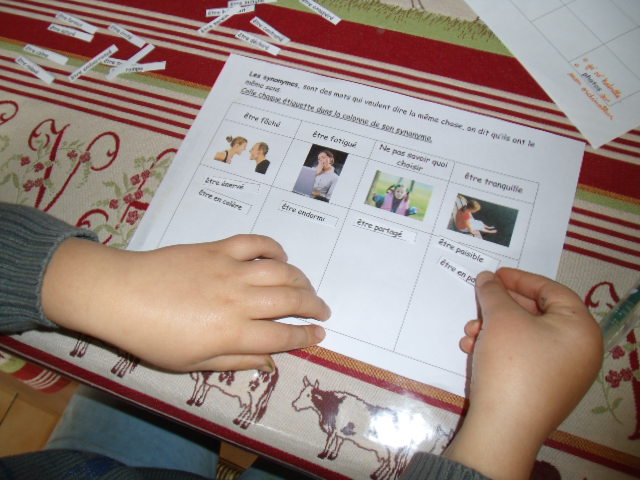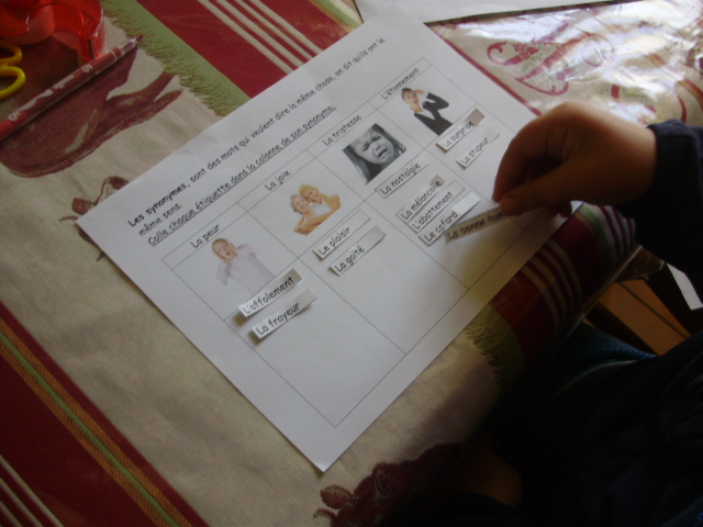 réalisé des fiches où l'enfant doit associer le nom à sa définition en