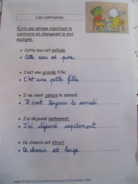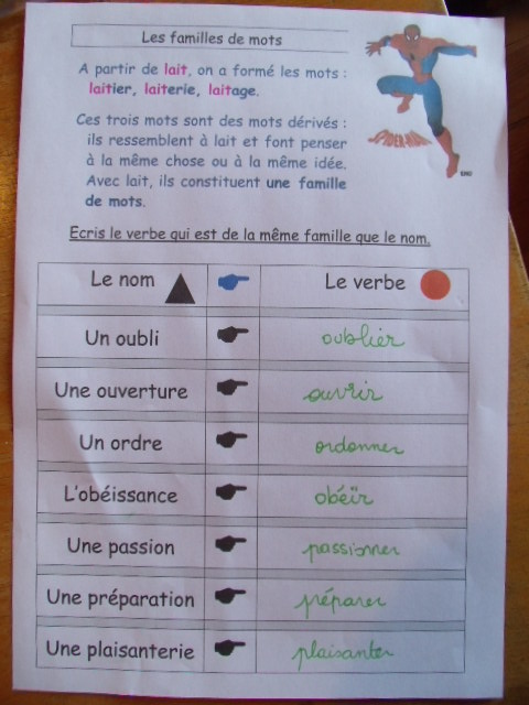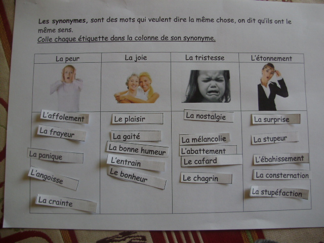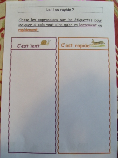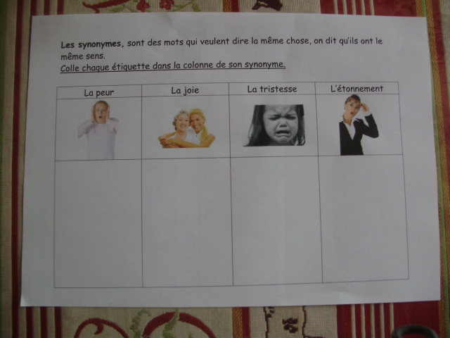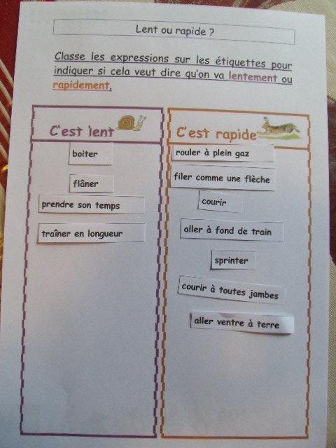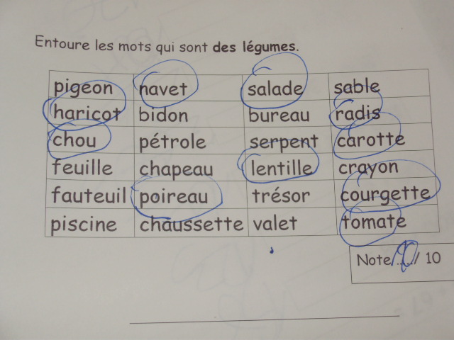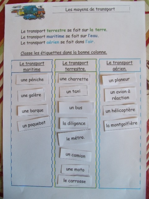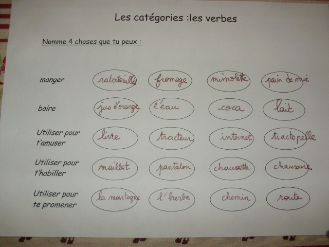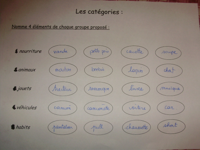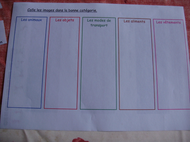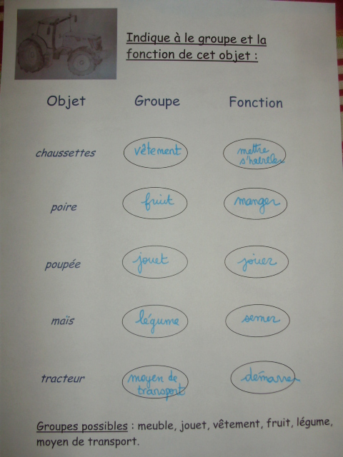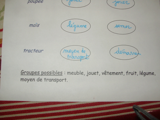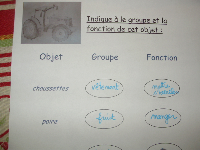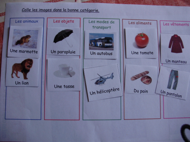 comme les nomme l'école. Il s'agit en fait de ranger par catégorie.