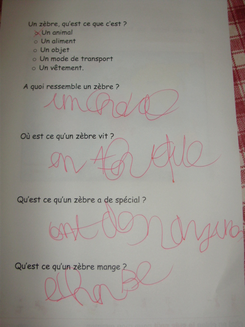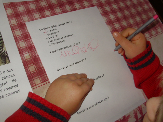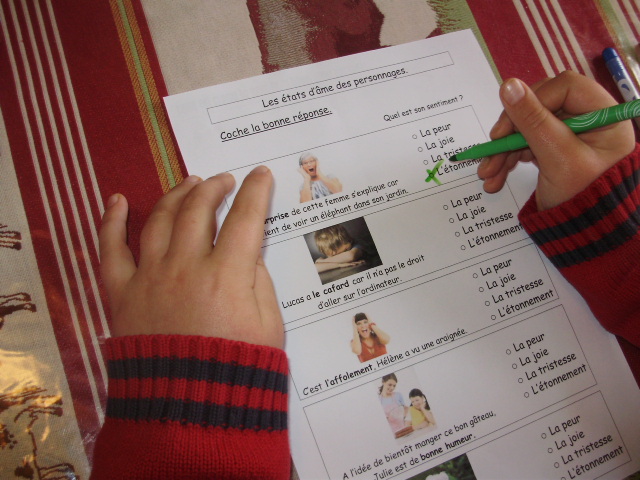 lesquelles l'enfant doit trouver le mot qui n'appartient pas à la