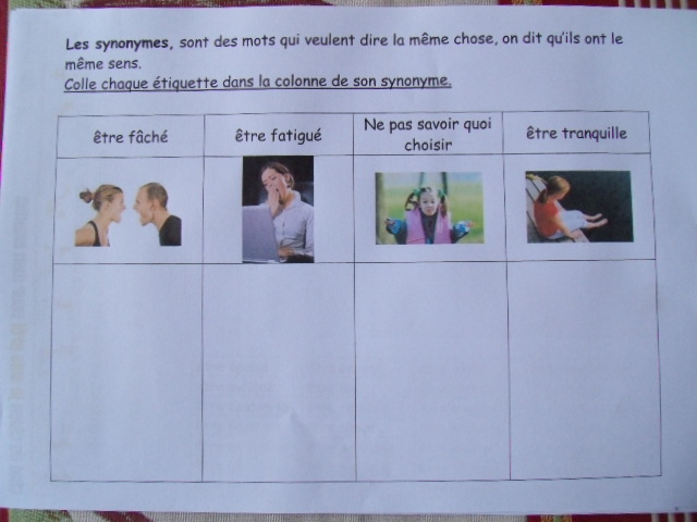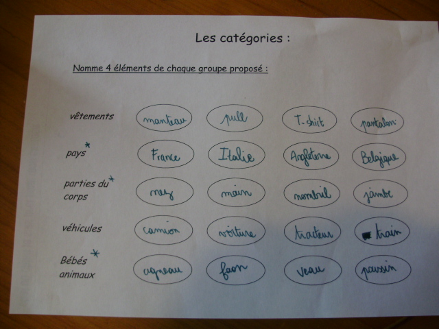 des exercices pour travailler sur la catégorisation. Il nous indique