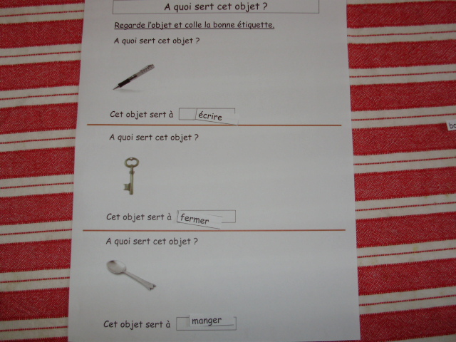 l'enfant doit proposer 4 éléments qui peuvent remplir la fonction