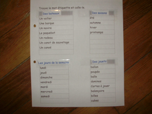 fiches qui permettent de travailler sur la notion de mots "étiquettes"