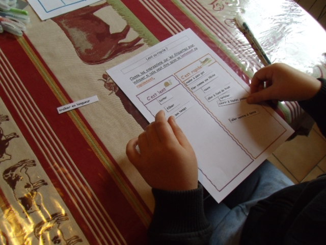 travailler sur la catégorisation simple des verbes. Pour chaque verbe,
