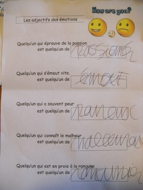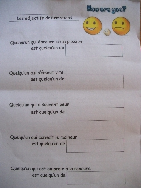 Fiches "les adjectifs des émotions"