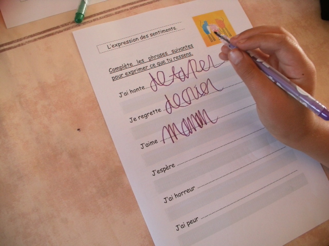 Fiches "verbes des sentiments"