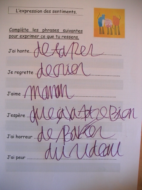 - Activité n°4 : Compléter des phrases en utilisant des verbes des sentiments.