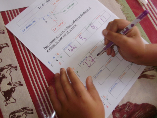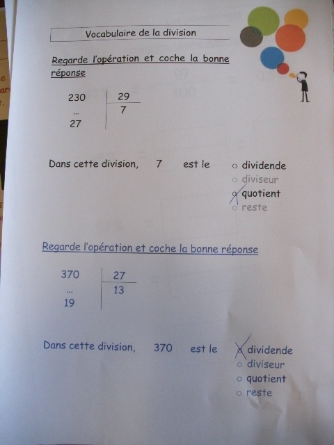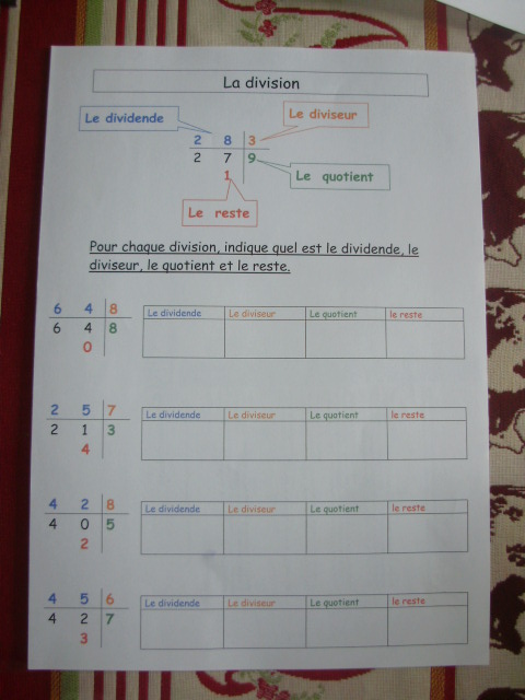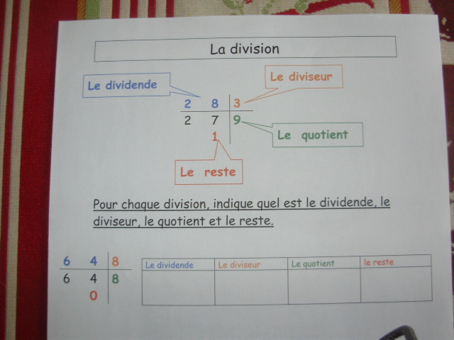 Le vocabulaire de la division.