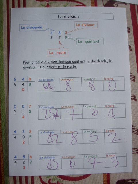 - le nombre qui divise s'appelle le diviseur