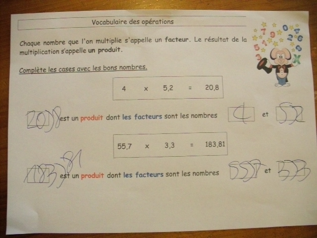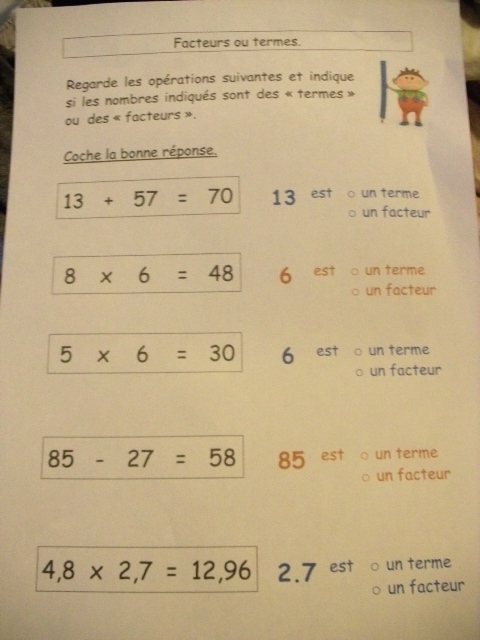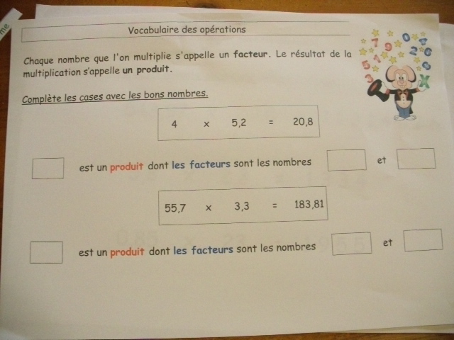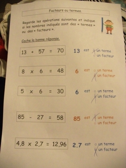 Pour les multiplications, chaque nombre concerné s'appelle "un facteur" ; c'est une notion que l'on apprend grâce à ses fiches.