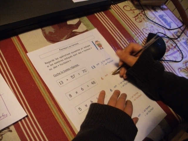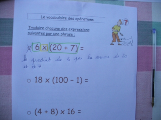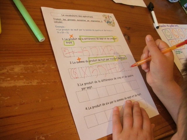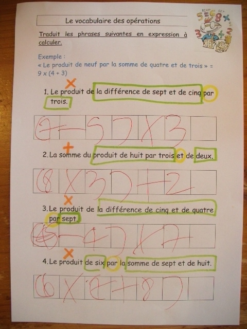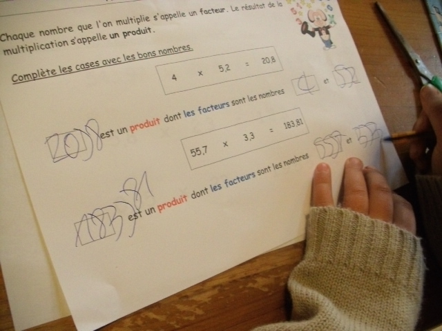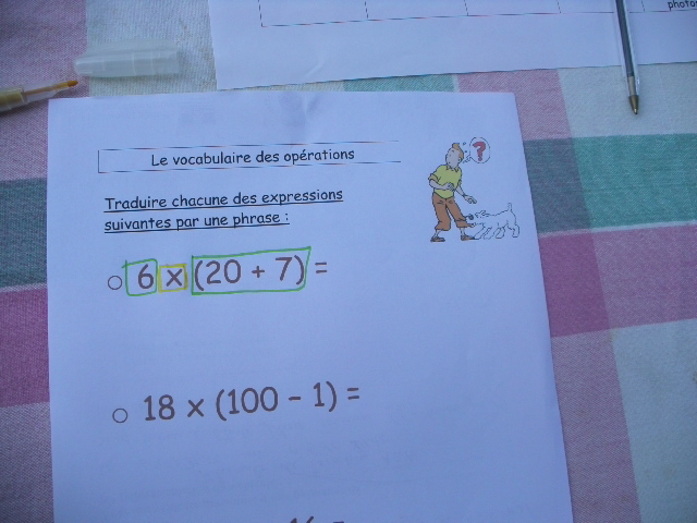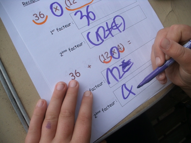 Je demande d'abord à l'enfant d'entourer le signe "multiplier" car les