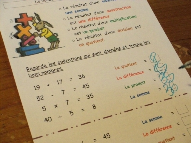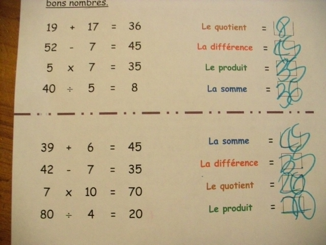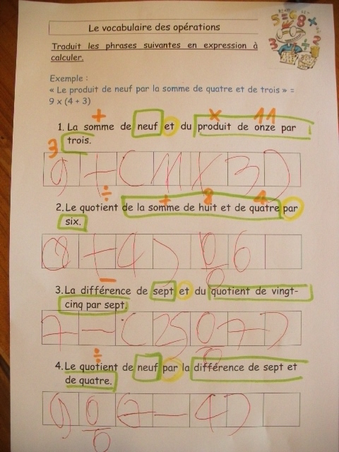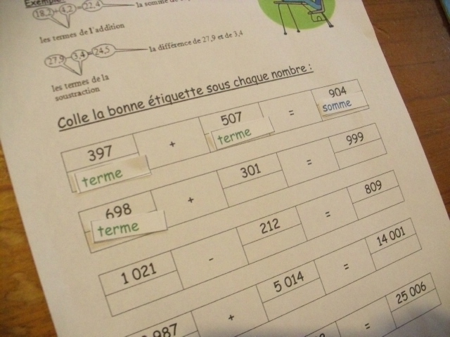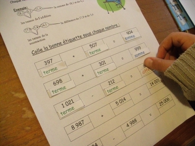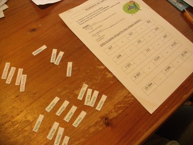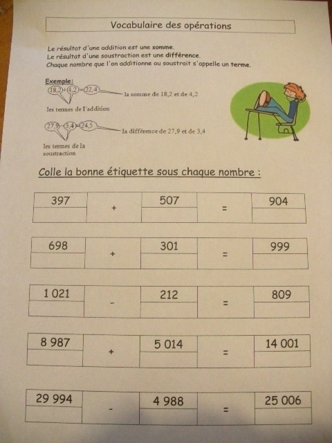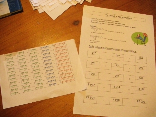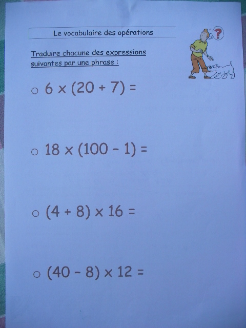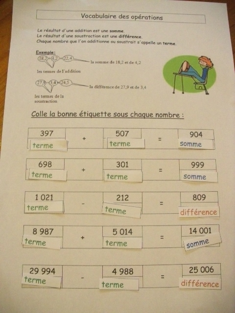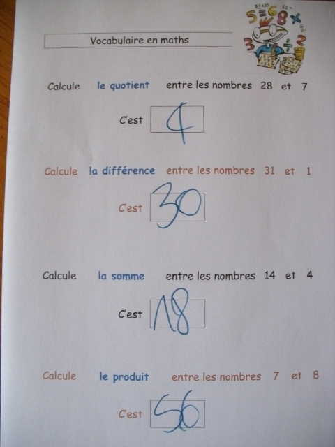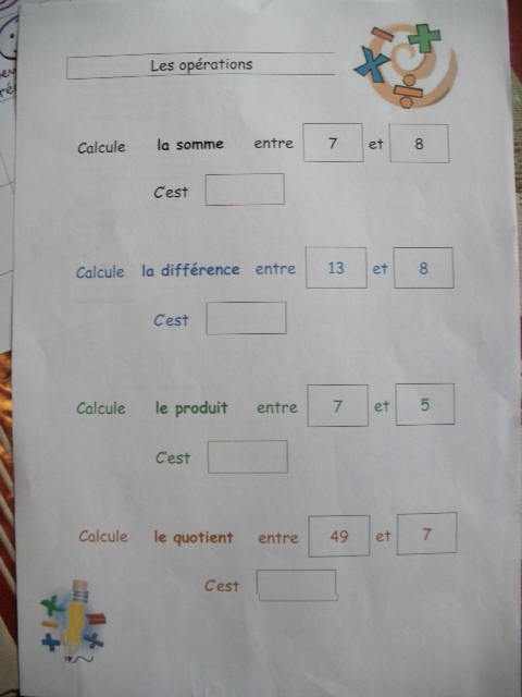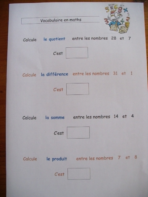 mathématique, j'ai proposé une fiche sur laquelle je présente à la fois