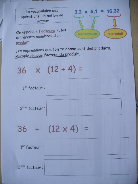 En cinquième, on revoit la notion de "facteur" d'un