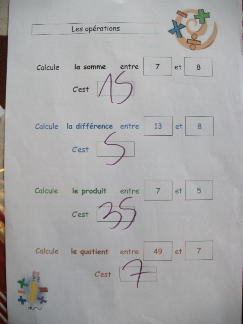 des additions, soustractions et multiplications. Notre fils doit, pour